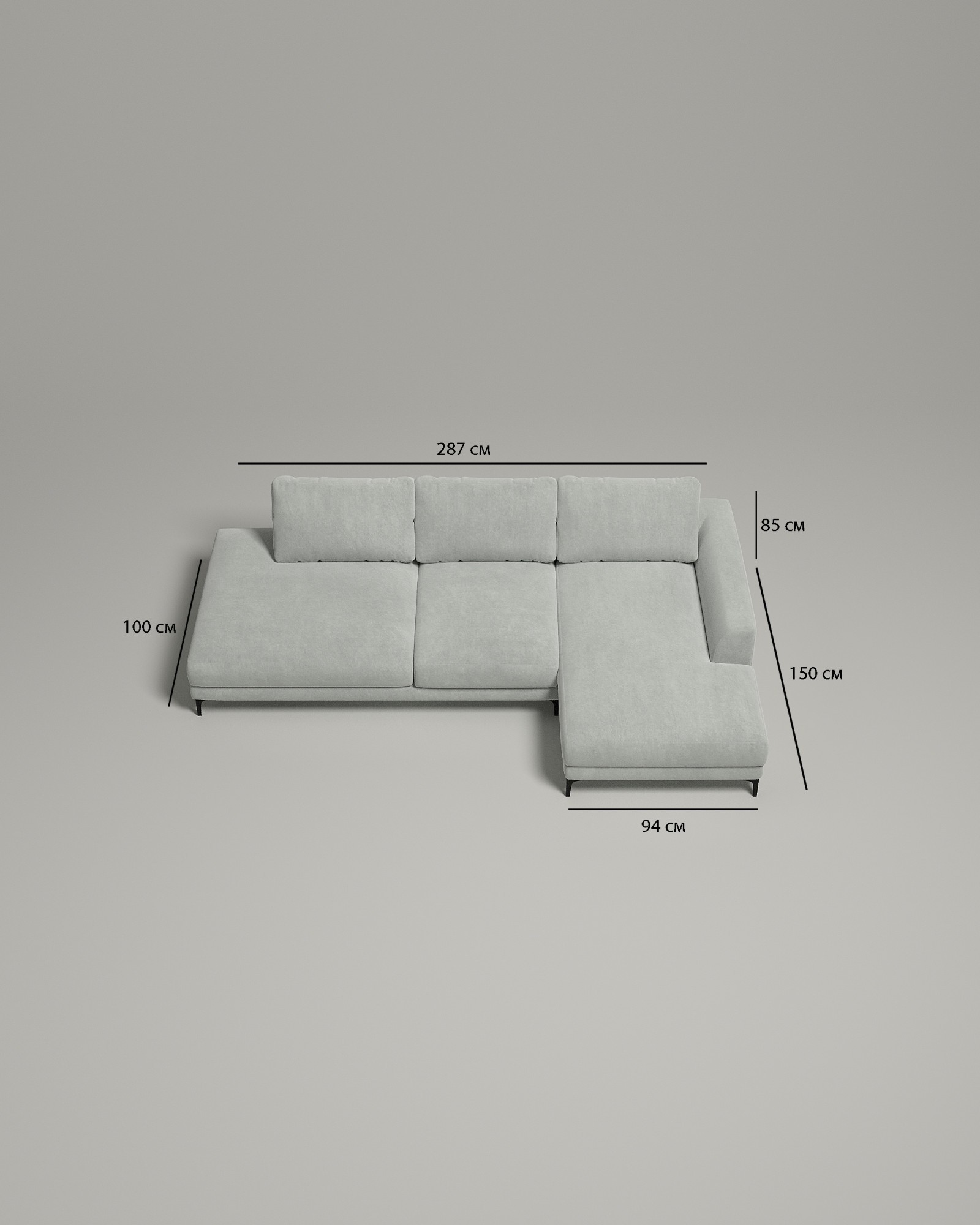 Диван угловой Industrial (серый велюр Velutto 73) без механизма
