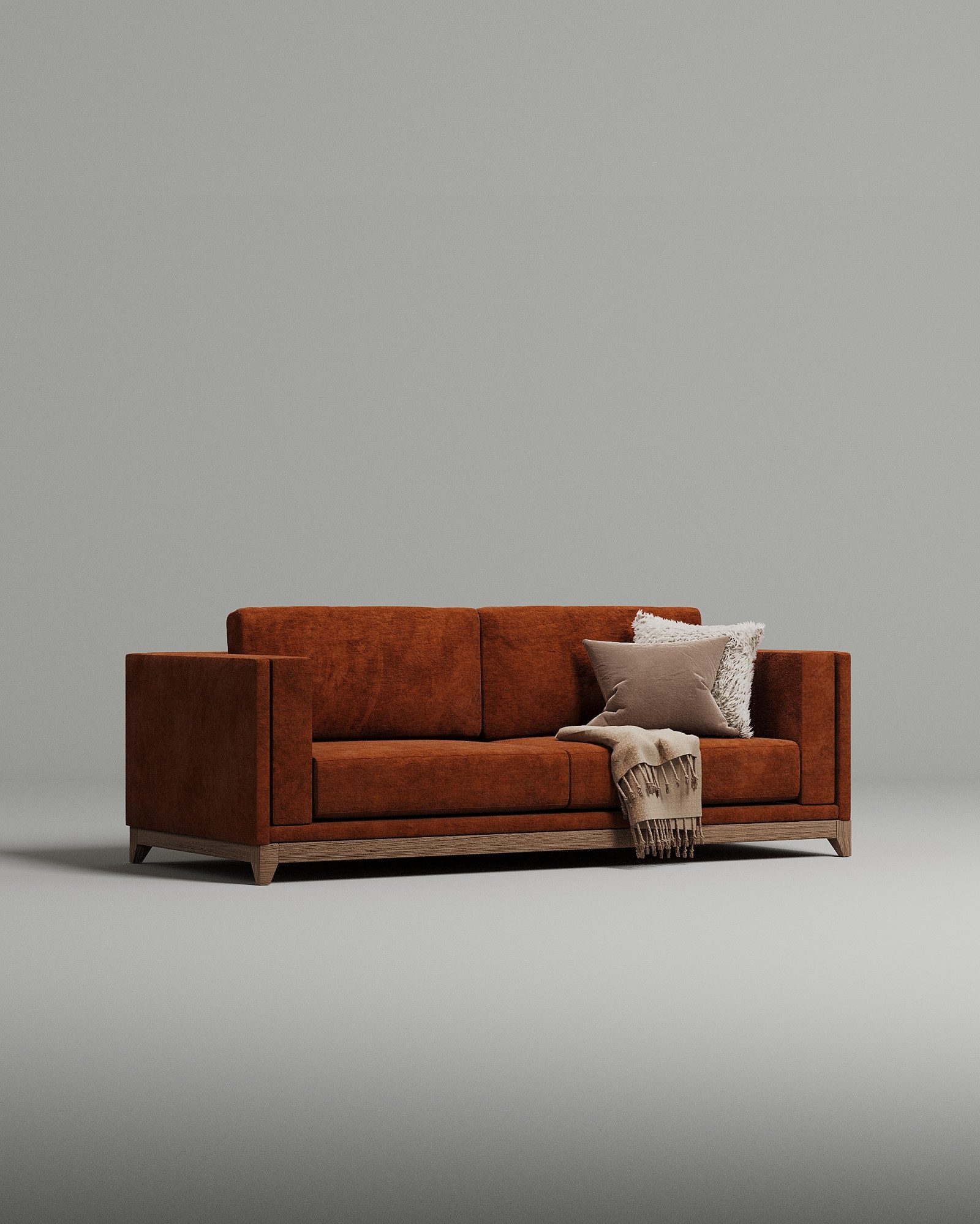 Диван отличается строгими геометричными линиями и удобным посадочным местом, и предлагается с основанием из массива дерева.
