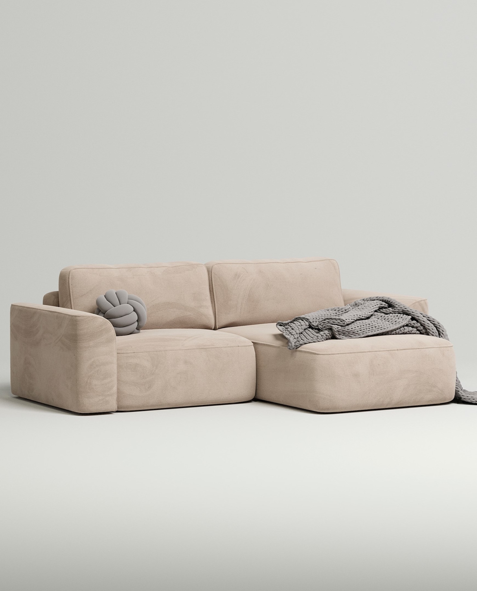 Обтекаемые формы и плавные подлокотники сохраняют ощущение уюта и визуальной лёгкости, даже в компактной угловой конфигурации. Диван выглядит аккуратно и не перегружает пространство.
