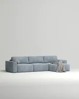 Диван угловой Пауде (голубой флок Dania sky A) с механизмом еврокнижка