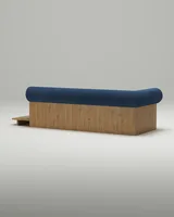 Цилиндрическая спинка задает коллекции характер и одновременно формирует более поддерживающую посадку для расслабленного отдыха.