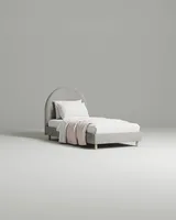 Детская односпальная кровать с высоким дугообразным изголовьем - идеальное решение для создания уютной атмосферы в детской или подростковой комнате. Высокое изголовье создает мягкую, поддерживающую спину опору для чтения или сна. Кровать изготовлена из прочных материалов высочайшего качества. Ортопедическое основание с гибкими ламелями способствуют равномерному распределению нагрузки и обеспечивают комфорт для вашего тела. Благодаря своей конструкции (наличию интервалов между ламелями) обеспечивается возможность естественного воздухообмена в матрасе, не препятствуя свободной циркуляции воздуха. Высокая ремонтопригодность (простая замена ламелей при выходе их из строя). Мягкое изножье кровати. С такой кроватью ваш ребенок будет чувствовать себя комфортно и безопасно, а ее стильный дизайн сочетается с любым интерьером и создает уютную и теплую атмосферу в комнате.