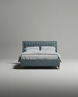 Кровать "Dairy" отличается лаконичным дизайном, простотой элегантностью, сочетая в себе традиционные элементы, она станет изюминкой вашей спальни и вдохновит вас на создание уютной обстановки в вашем доме. Ортопедическое основание с гибкими ламелями способствуют равномерному распределению нагрузки и обеспечивают комфорт для вашего тела. Благодаря своей конструкции (наличию интервалов между ламелями) обеспечивается возможность естественного воздухообмена в матрасе, не препятствуя свободной циркуляции воздуха. Ремонтопригодность (простая замена ламелей при выходе их из строя) Высокое мягкое изголовье со стежкой несомненно будет красивым акцентом в вашей спальне. К кровати вы можете приобрести прикроватный пуф Flura из нашей коллекции.