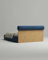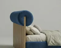 Сочетание цилиндрической формы и деревянной плоскости создаёт выразительный, собранный образ и выгодно отличает кровать от стандартных мягких моделей.