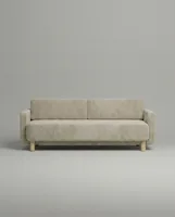 Каркас выполнен из берёзовой фанеры и массива хвойных пород. Многослойное наполнение из ППУ помогает дивану сохранять форму и комфортную поддержку в ежедневном использовании. Для модели доступно более 200 вариантов обивки, что позволяет подобрать исполнение под конкретный интерьер. Ножки из массива дуба подчёркивают качество исполнения и завершают образ модели.
