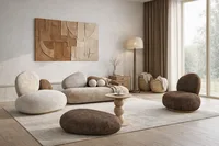 Обтекаемый силуэт без жёсткой геометрии делает пуф визуально спокойным и цельным. Он поддерживает общую пластику пространства, не перегружая его.