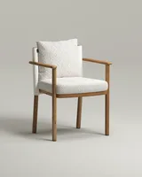 Форма, которая раскрывается в деталях. Стул позволяет сочетать материалы и текстуры: задняя часть спинки и сиденье могут быть выполнены в разных тканях или полностью в одном исполнении. Деревянные подлокотники из массива дуба добавляют тепла и подчеркивают естественный характер модели. Это стул, который легко вписывается и в современный интерьер, и в уютную домашнюю атмосферу.