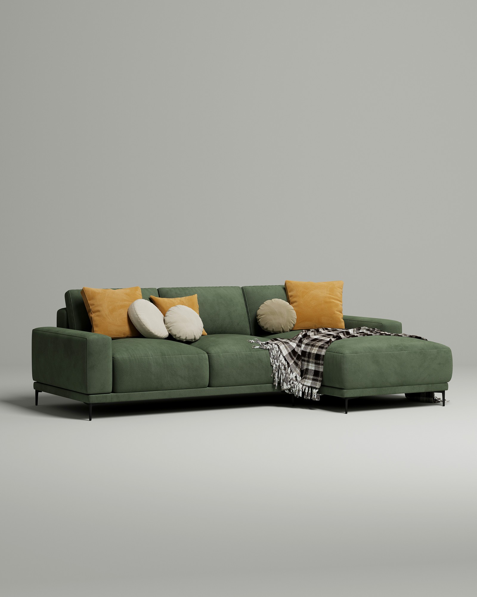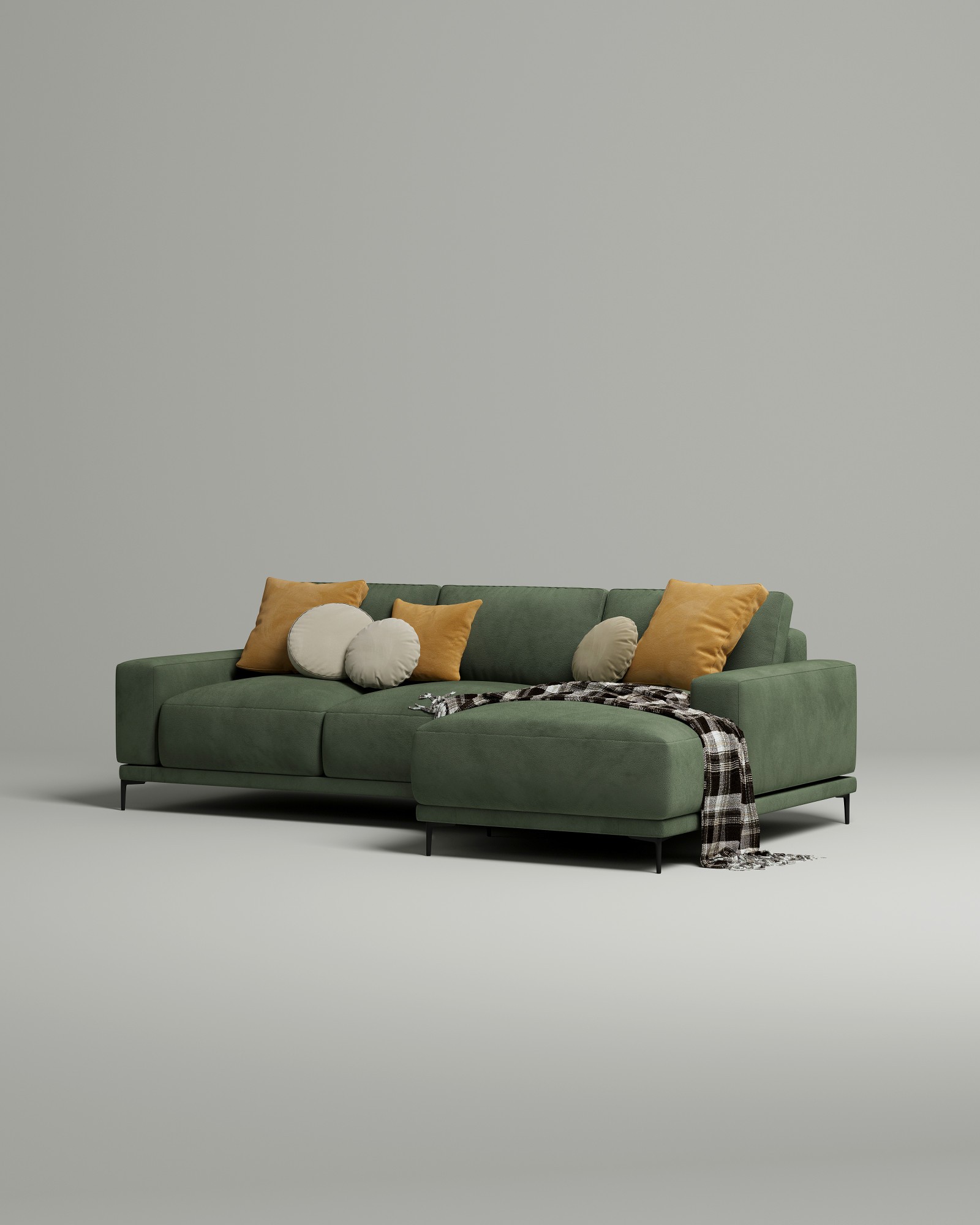 Диван угловой Osnen (зеленый велюр Velutto 70) с механизмом тик-так